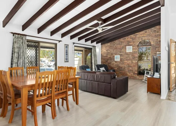 Gasten Bribie Beach Access Track binnen ongeveer 10 minuten met de auto vinden en het centrum van Woorim binnen 10 minuten te voet bereiken. Het vakantiehuis is gesitueerd in de buurt van de Bongaree Pier, terwijl First Ave near Arcadia Ave busstation binnen een straal van 950 meter is.